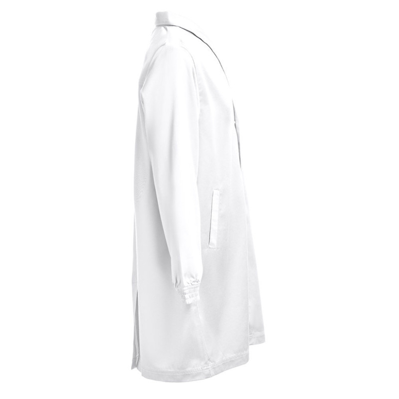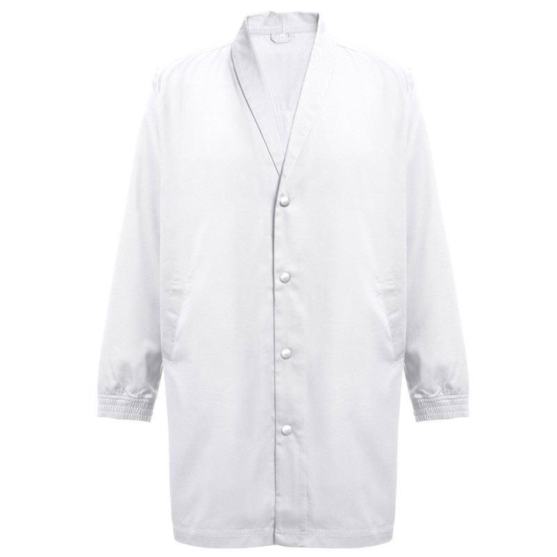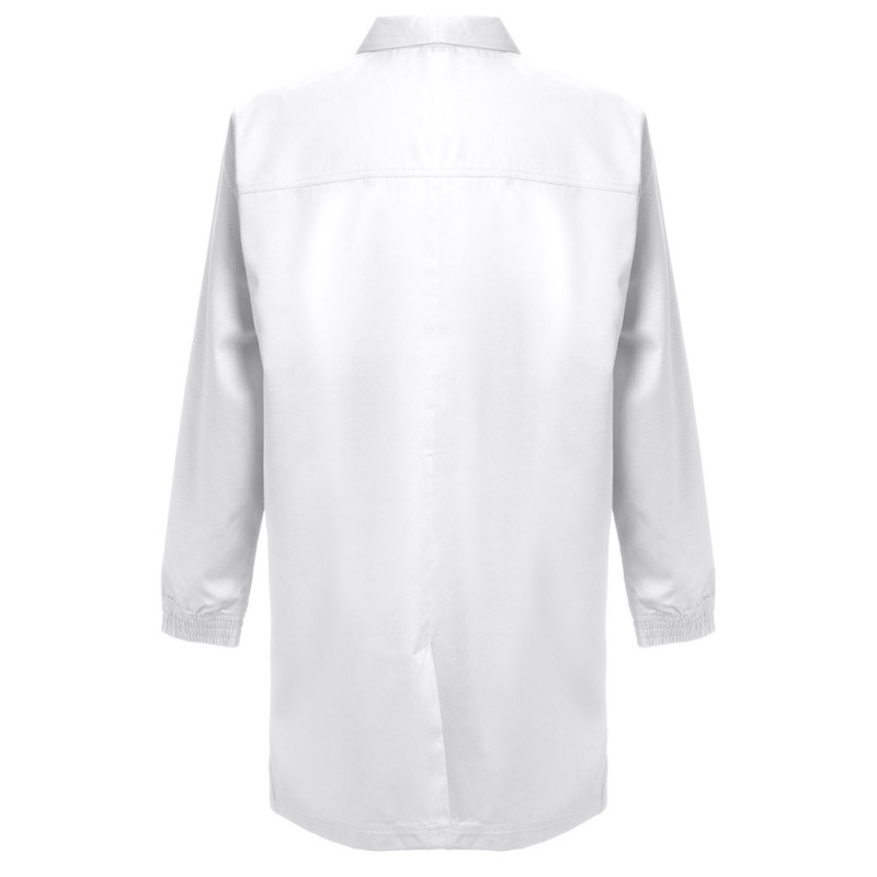 Workwear smock (unisex) 20% cotton and 80% polyester (190 g/m²). Elegant and modern cut with stylised collar and 2 side pockets. Elastic cuffs and buttoning with snap buttons. Opening at the back for greater freedom of movement. Sizes: S, M, L, XL, XXL, 3XL
