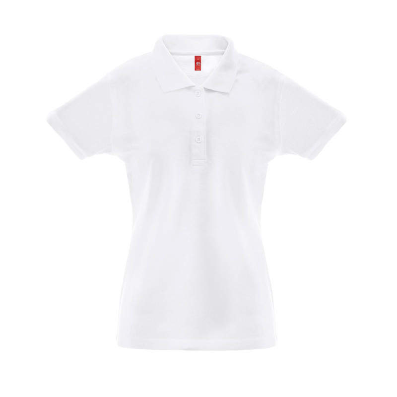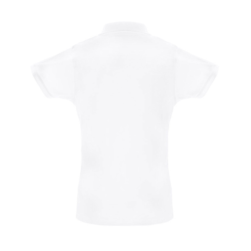 35% carded cotton and 65% polyester (200 g/m²) short-sleeved pique mesh women polo shirt. Fitted waist polo with rib collar and sleeves, the collar is reinforced with pique knit ribbon. Contains a reinforced collar with 3 matching coloured buttons (extra button in the inner seam). Piece cut and sewn. Sizes: S, M, L, XL, XXL