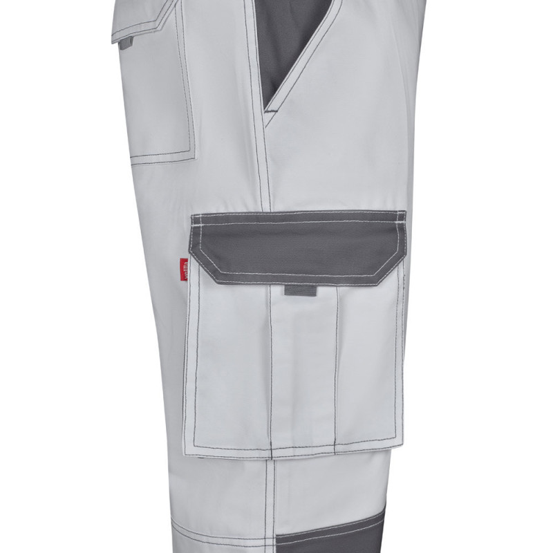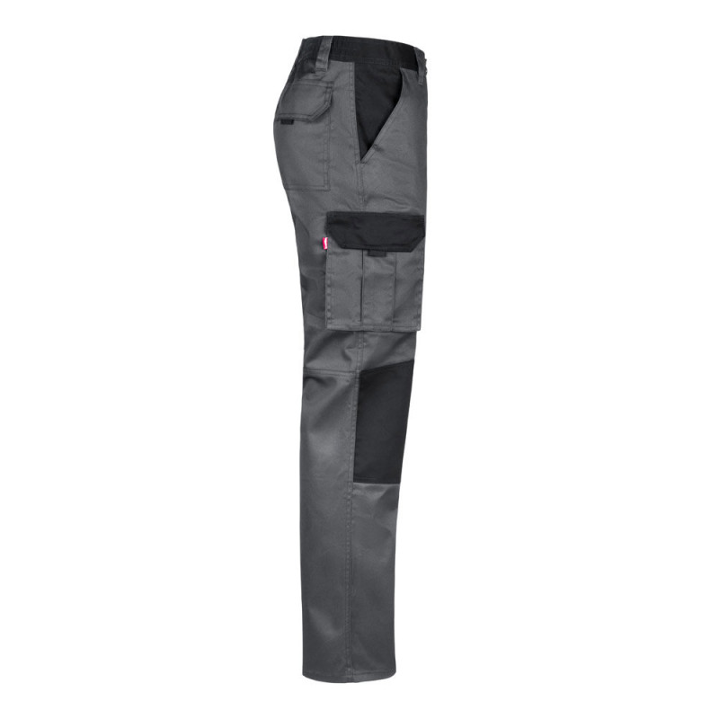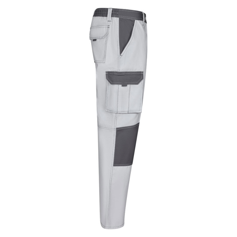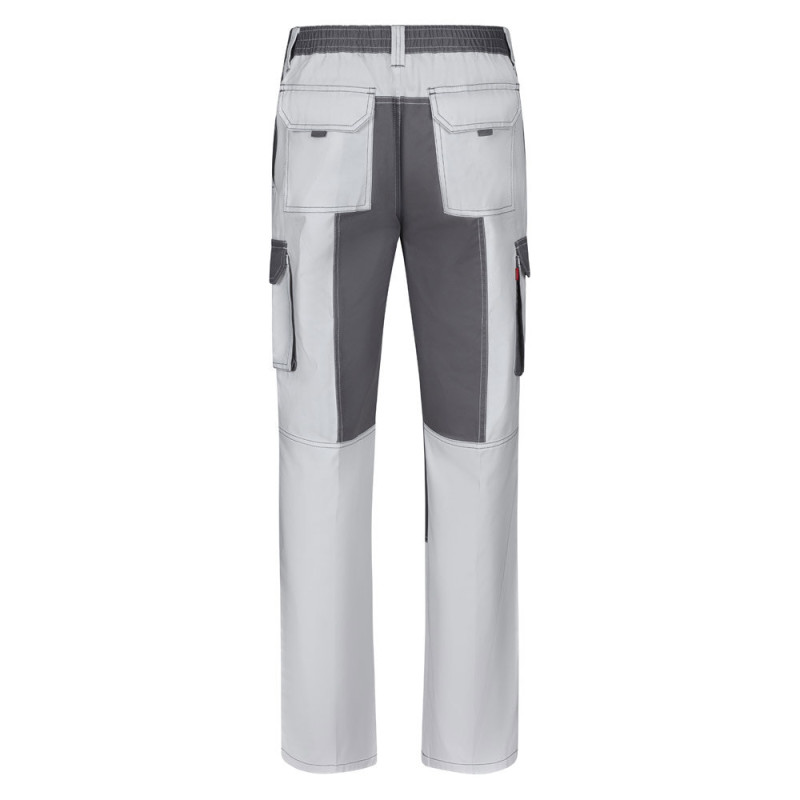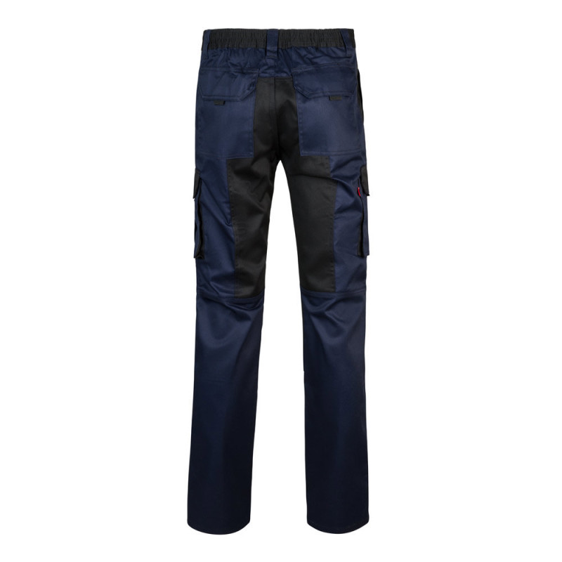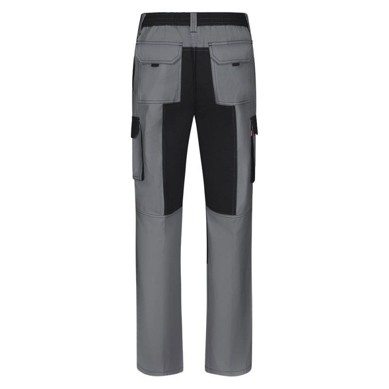 Two-tone multi-pocket twill trousers (240 g/m²), in cotton (35%) and polyester (65%). Slim Fit cut, elasticated waistband and fabric reinforcement on the knees and back. Contains six pockets (2 French pockets, 2 side gusset pockets and 2 back gusset pockets). Size: 34, 36, 38, 40, 42, 44, 46, 48, 50, 52, 54, 56, 58, 60
