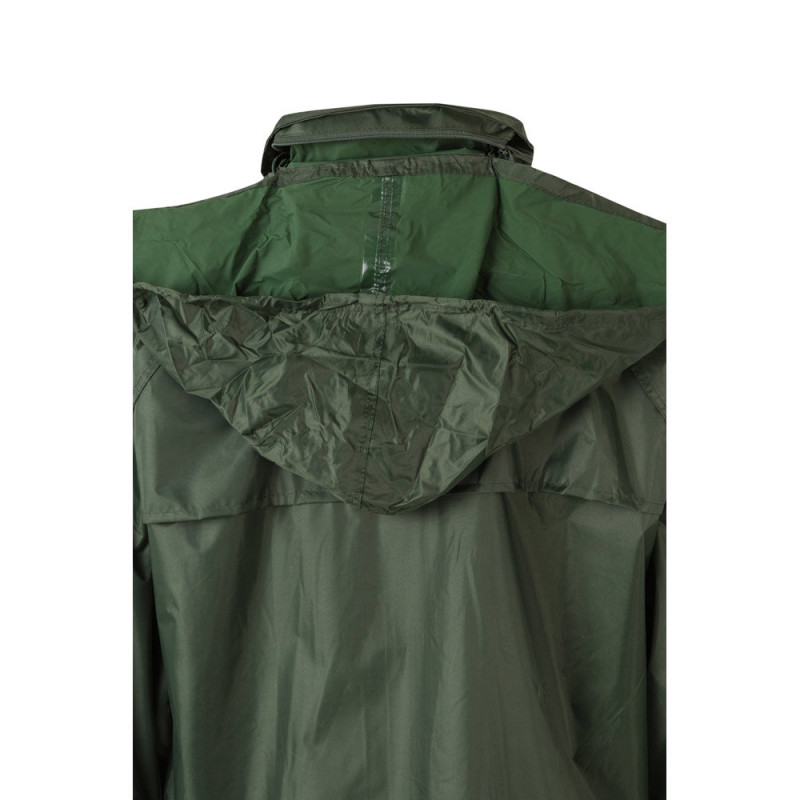 Rain suit (225g/m²), two-piece in polyester (100%) with PVC coating.Jacket, with central zip, with hood inside the collar, elasticated inner cuffs, inner mesh on the back and metal eyelet in the armpits, to promote breathability, with two pockets (2 lower pockets, hidden with flap). Trousers: central zip with buttons, elasticated waistband, with adjustable buttons on the bottom, side openings with flap to access the pockets. Supplied in bag. Size: M, L, XL, 2XL, 3XL
