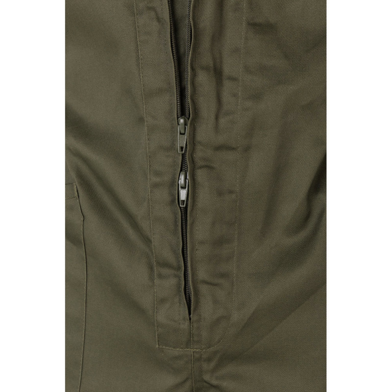 Twill jumpsuit (200g/m²), in cotton (35%) and polyester (65%). With asymmetrical central zip with double slider. Elasticated waist, ribbed cuffs. With five pockets (1 chest pocket, 2 lower pockets, 1 back pocket and 1 pocket on the right leg). Size: 48, 50, 52, 54, 56, 58, 60, 62, 64, 66, 68, 70, 72