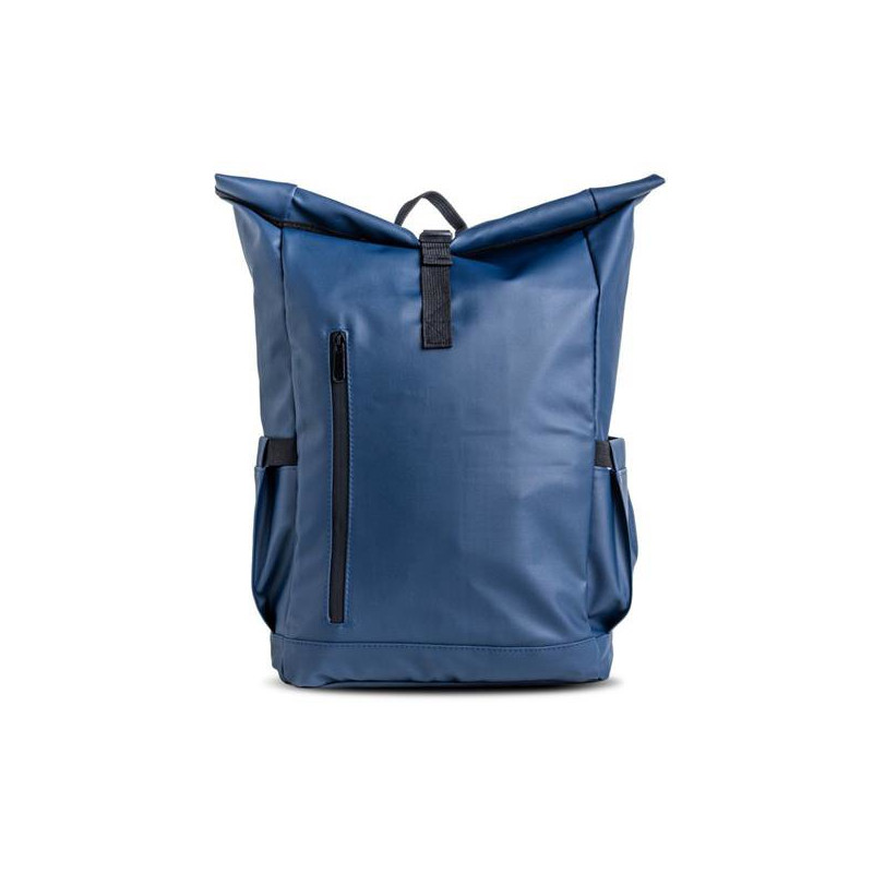Backpack in 600D RPET (recycled plastic) coated with PU and lined with 210D polyester, dimensions 30x45x14cm. Made from durable and environmentally friendly material (PU + RPET 210D), which offers splash protection. Features a main compartment with zipper, padded inner pocket for 15.6” laptop, front pocket with zipper, and side pockets for extra storage. The adjustable and padded straps ensure comfort in any situation. A stylish, sturdy backpack with great storage capacity. Available in black and navy blue. Also check out the waist bag (Reciwaist/ 310266) and travel bag (Zug/ 31119) from this same collection.