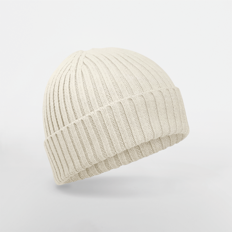 Algodão 100% biológico. Tricô com malhas de espessura única. Calota com pinças invisíveis para um conforto máximo com dobra para uma personalização ideal.