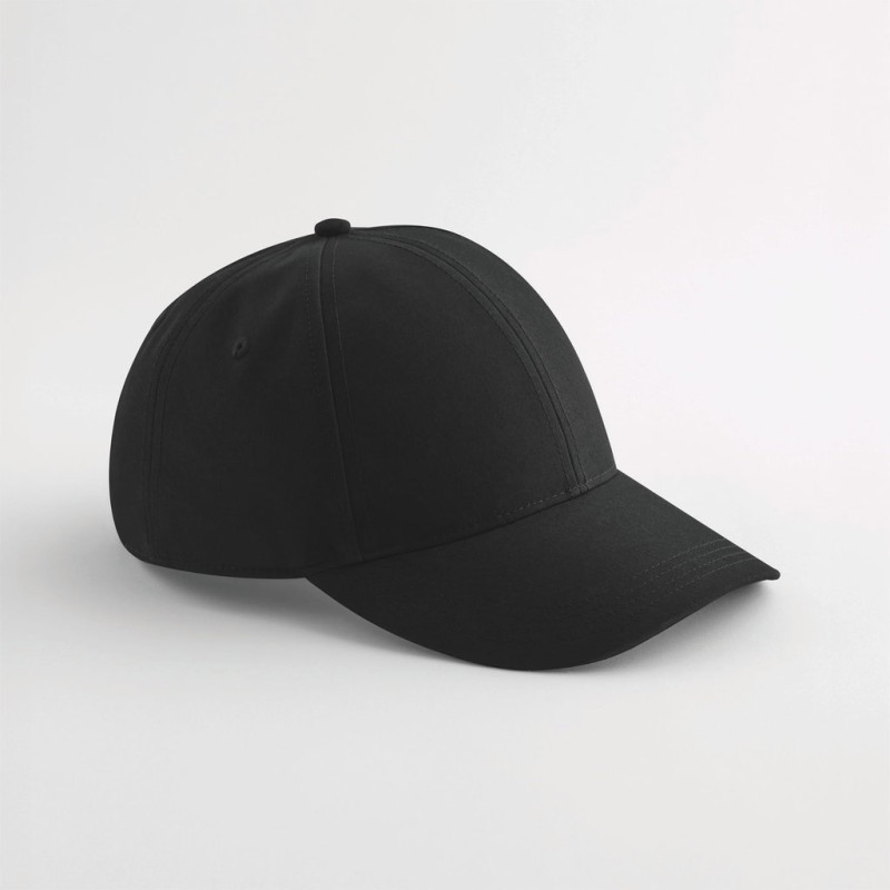 100% poliéster reciclado, certificado GRS. Tecido respirável e impermeável. Estilo unissexo. Pala curva. Painéis frontais semiestruturados. Design discreto com 6 painéis. Ilhós de ventilação cosidos. Fecho ajustável com banda de tecido e fivela com fecho triplo.