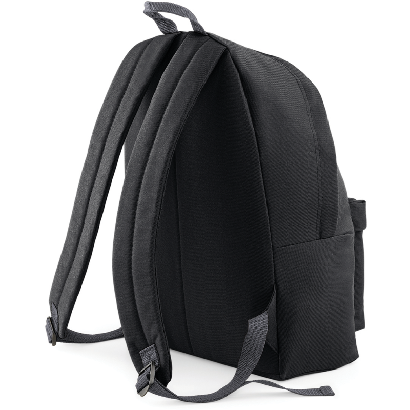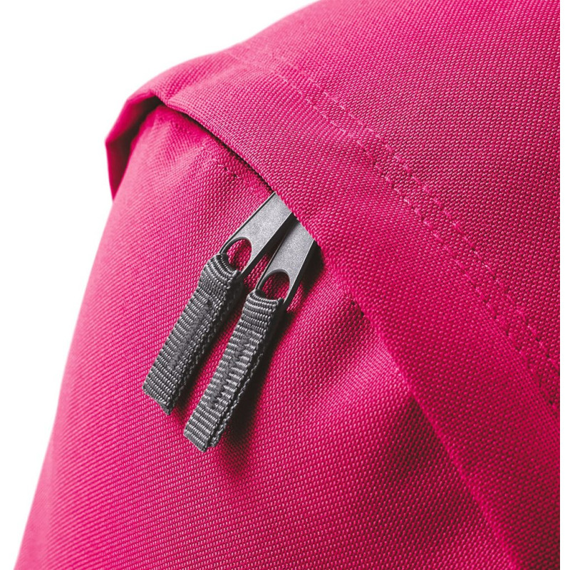 Poliéster 600D, etiqueta amovível "tearaway", costas acolchoadas, alças a tiracolo acolchoadas ajustáveis, pega de transporte, bolso frontal com fecho.
