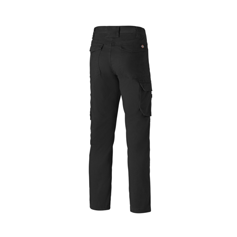 97% algodão/3% elastano. Bolso cargo com velcro e bolso para telefone. Joelho ergonomicamente moldados. Bainha dupla. Base das pernas apertada. Calça com fecho. Presilha grande na traseira. 2 bolsos traseiros com velcro. 6 presilhas para cinto. Botão recoberto de plástico. Bolso duplo para acessórios.
