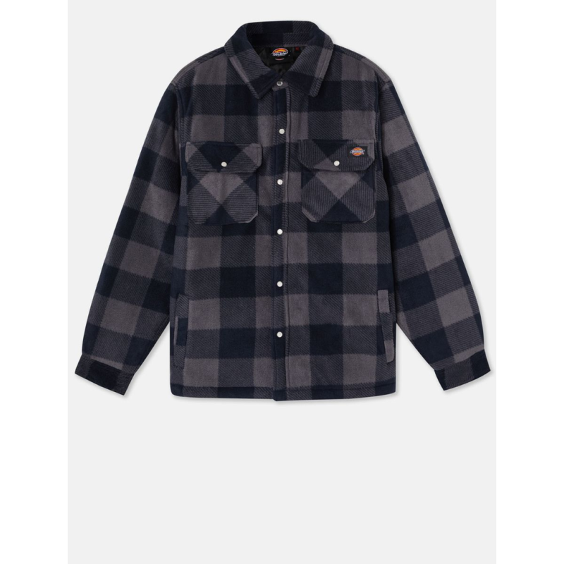 Camisa polar 100% poliéster 220 g/m², forrada 100% poliéster (50 g/m²) e acolchoada 100% poliéster (enchimento 120 g/m²). Fecho com molas de pressão. 2 bolsos laterais e 2 bolsos no peito com pala e fecho com mola de pressão. Etiqueta Dickies cosida no bolso no peito esquerdo.