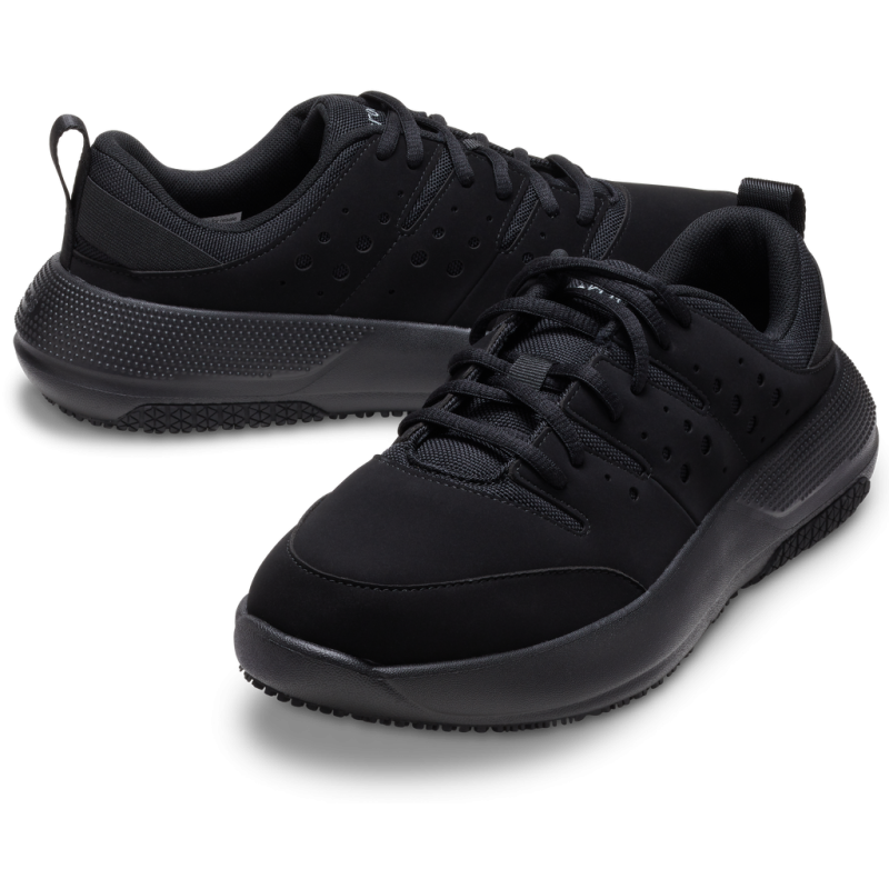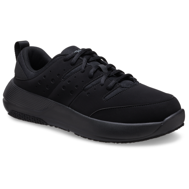 Calçado de trabalho respirável e fácil de limpar. Com sola interior LiteRide™ para garantir melhor andar e amortecimento, bem como sola Crocs Lock™ antiderrapante. Testado de acordo com a norma F2913-11, certificado CE. Em conformidade ou superior à EN ISO 20347:2012, OB, SRC.