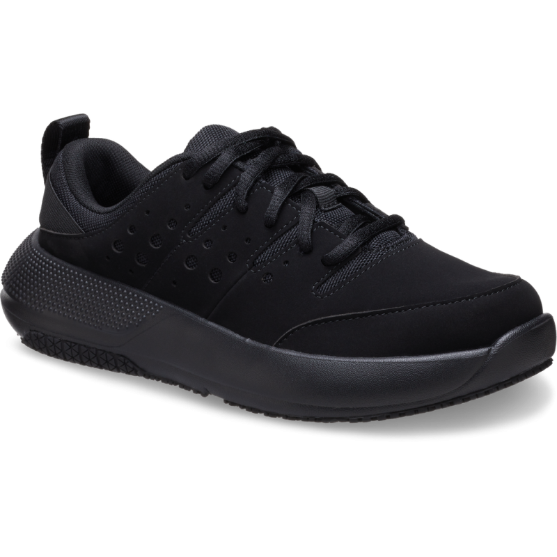 Calçado de trabalho respirável e fácil de limpar. Com sola interior LiteRide™ para garantir melhor andar e amortecimento, bem como sola Crocs Lock™ antiderrapante. Testado de acordo com a norma F2913-11, certificado CE. Em conformidade ou superior à EN ISO 20347:2012, OB, SRC.