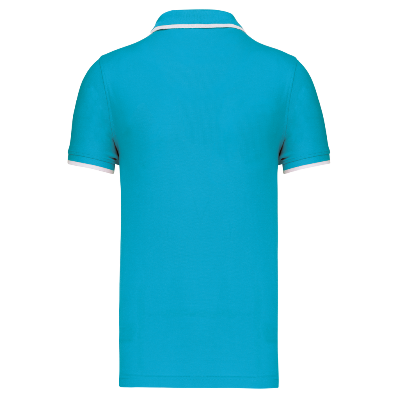 100% algodão piqué. Colarinho em malha rib com risca em contraste. Tapa-costuras e aberturas laterais em contraste (excepto White / Navy: sem contraste sob o colarinho, apenas uma fina borda vermelha sob o placket). Carcela com 2 botões. Acabamento da manga com risca em contraste e malha rib. Acabamento costura dupla.