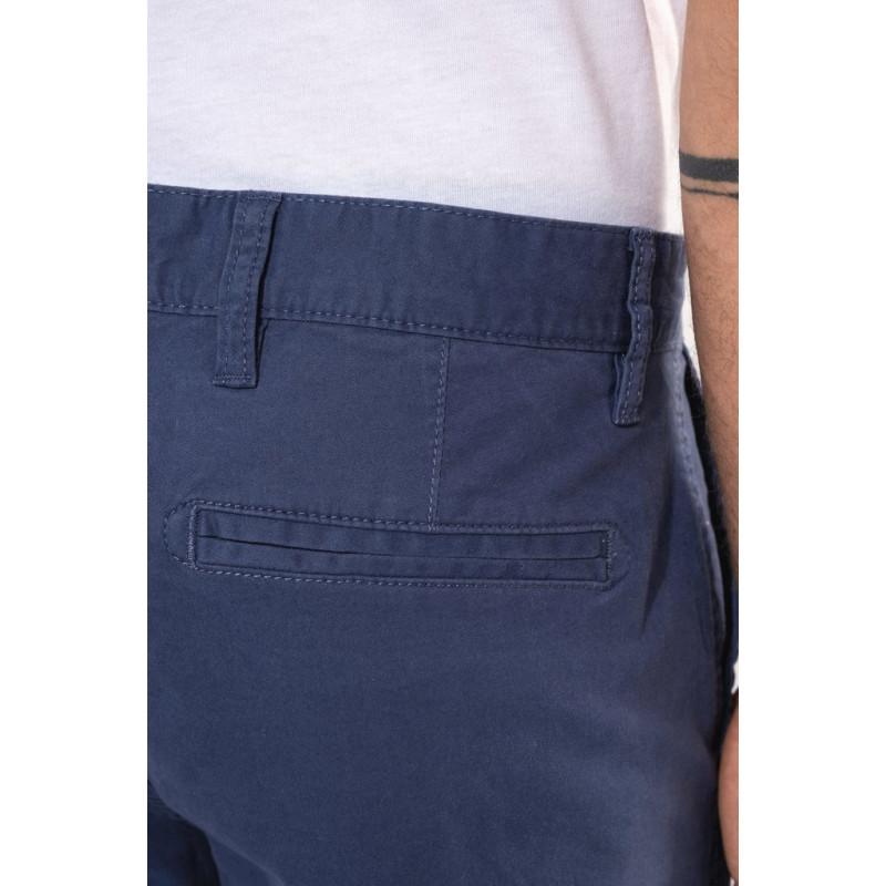 98% sarja de algodão / 2% elastano. Tecido aveludado com banho de enzimas para um conforto extra. 2 bolsos italianos laterais, um bolso pequeno e outro para moedas. 2 bolsos traseiros com pesponto de reforço. Com fecho e com botões. Presilhas na cintura. Corte moderno.