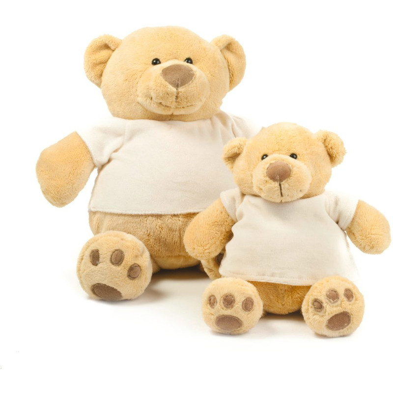 Peluche 100% poliéster. Urso com t-shirt em veludo. Adequado para crianças de todas as idades. Em conformidade com a EN71, norma europeia relativa às regras de segurança dos brinquedos.
