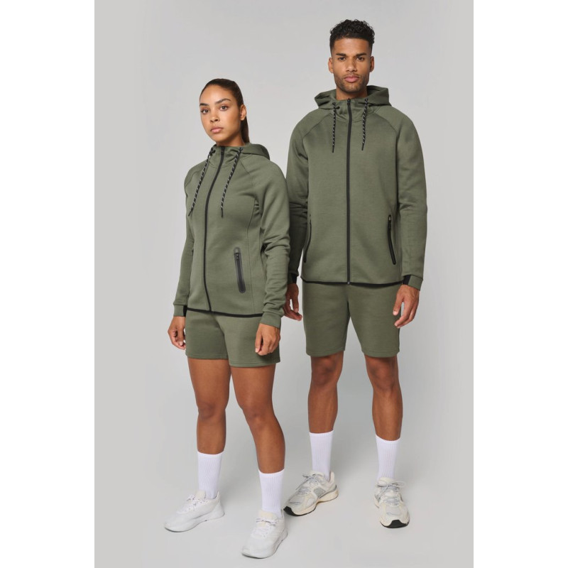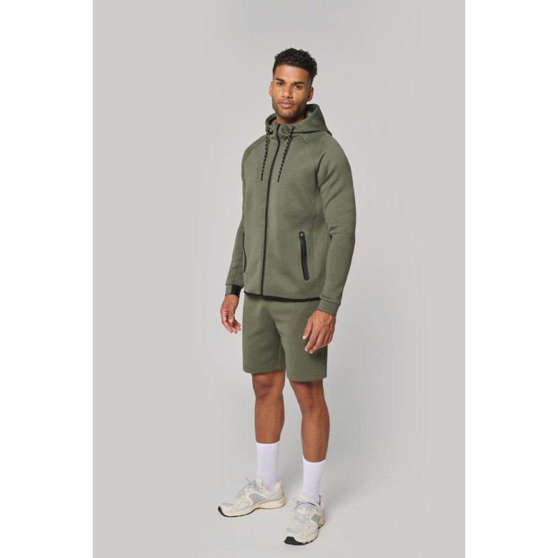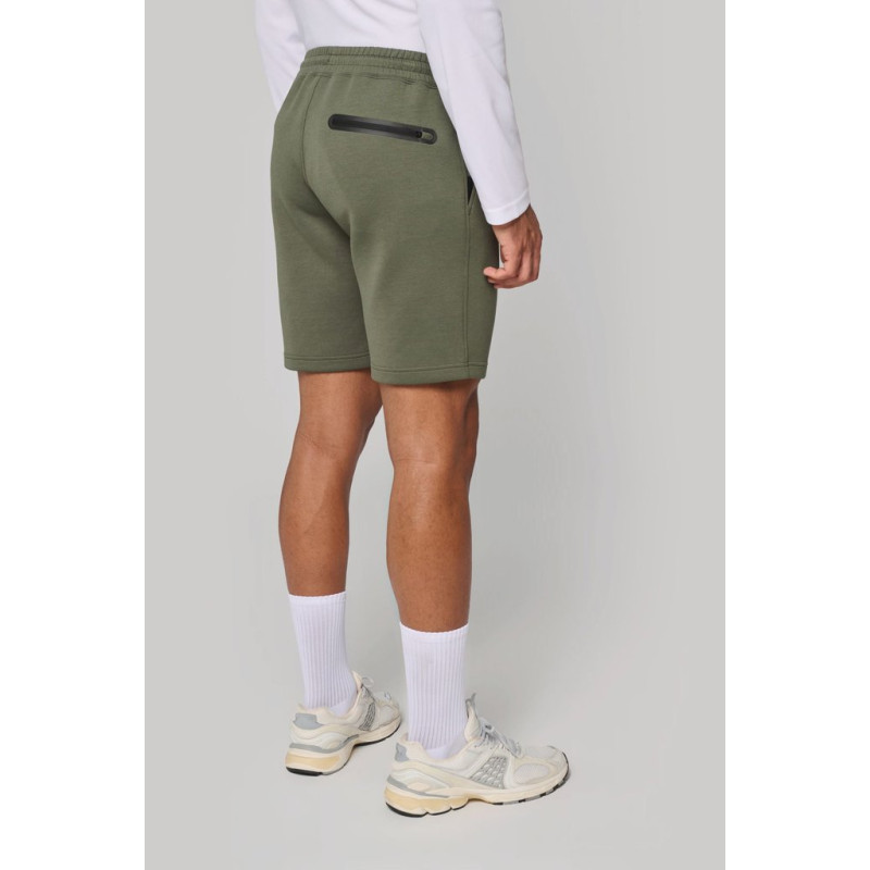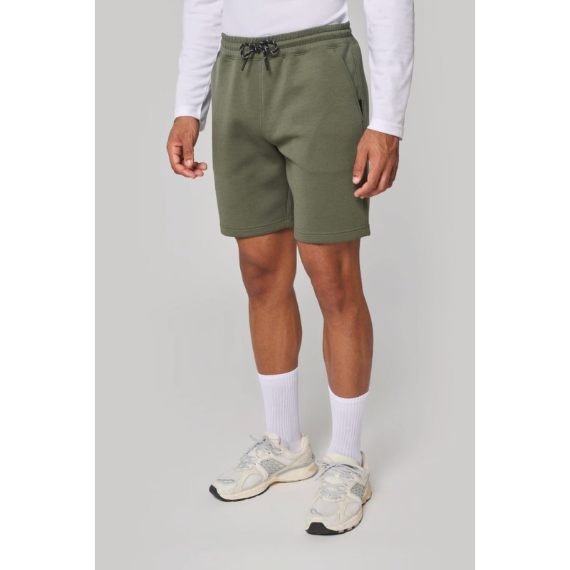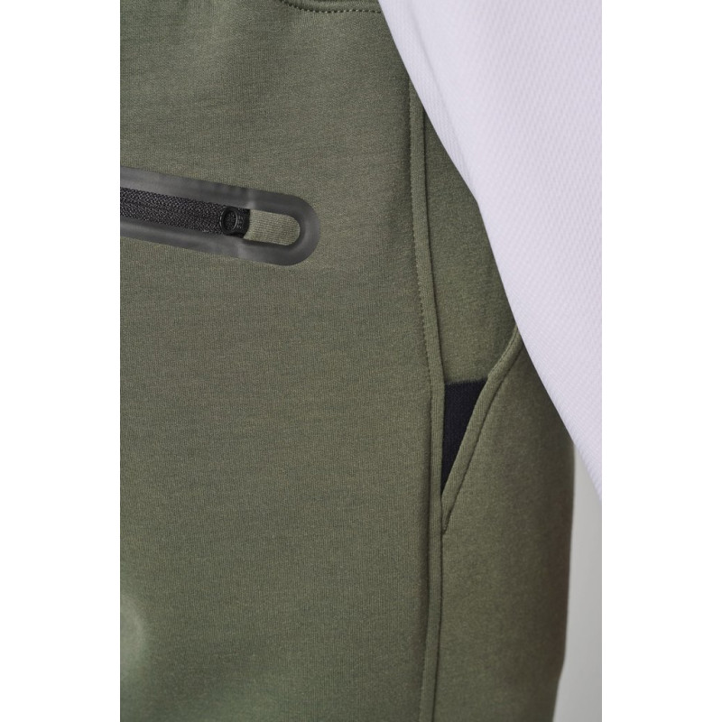 Cores lisas: 94% poliéster/6% elastano. Cores mescladas: 79% poliéster/15% viscose/6% elastano. Material ultraconfortável. Cintura elástica com cordão de ajuste bicolor com ponta plástica e ilhós metálicos. 2 bolsos frontais forrados em jersey e 1 bolso traseiro com fecho, acabamento termoculado em contraste. Acabamento dos bolsos com uma parte elástica em contraste Black em todas as cores e Dark Grey nas cores Black e Ash Heather. Acabamento costura dupla na bainha. Etiqueta da marca Tear-away.