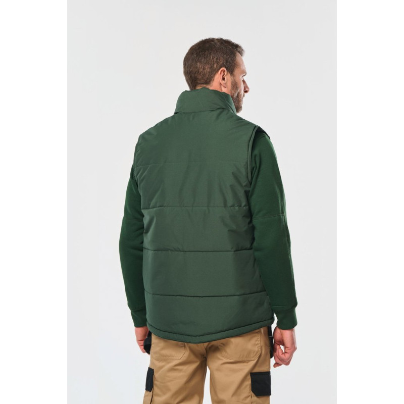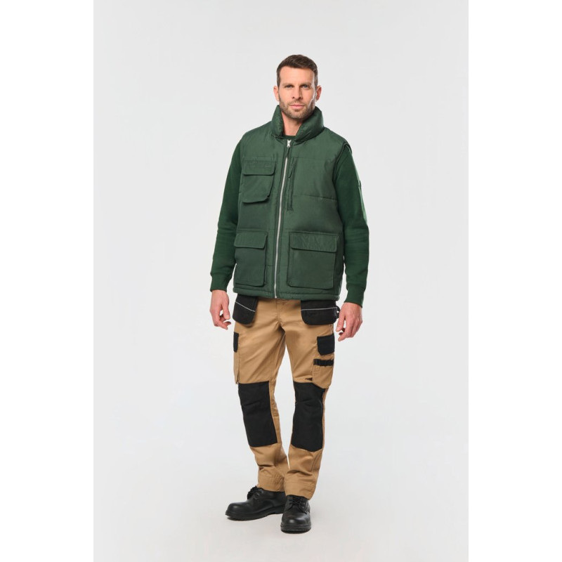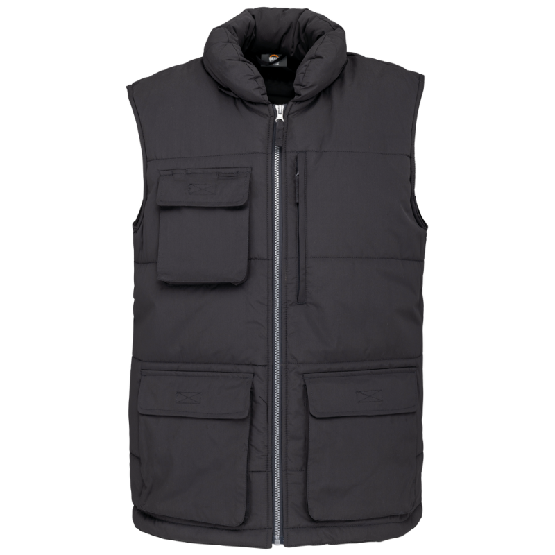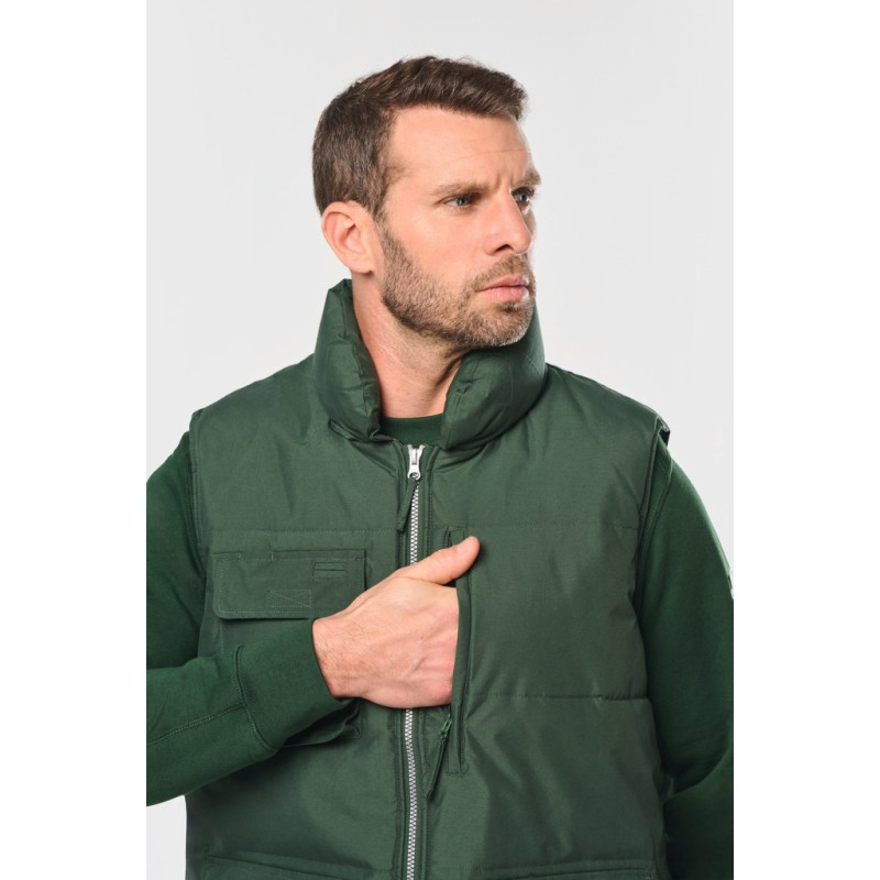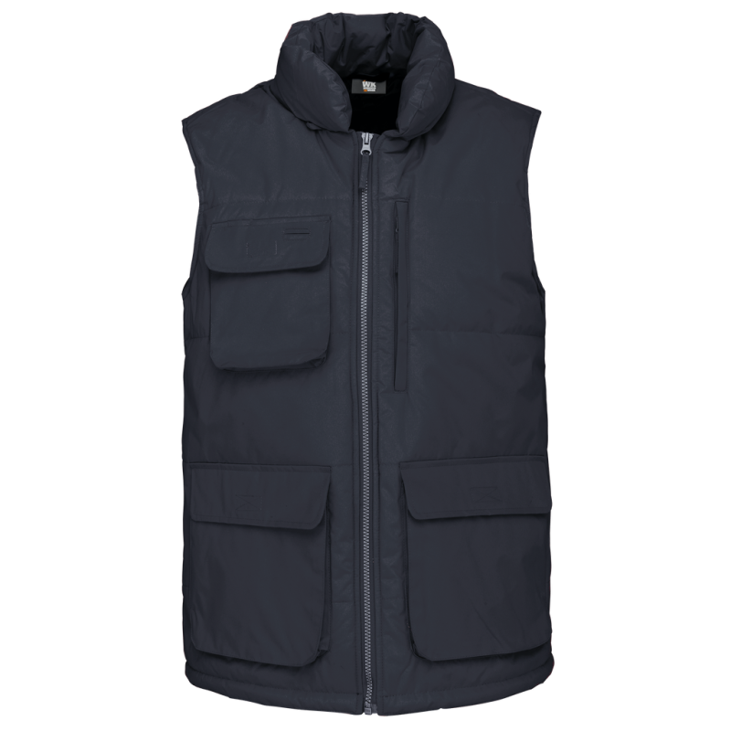 100% poliéster. Microfibra com revestimento em PVC água até 1500 mm. Forro. 100% poliéster. 4 bolsos exteriores. 2 bolsos com palas e fecho em velcro, 1 bolso no peito com acesso para auricular. 1 bolso no peito com fecho. 1 bolso interior com fecho. Gola acolchoada com acesso para auricular. Cordão para ajuste. Fecho frontal na cor cinzenta. Fecho de acesso para personalização.
