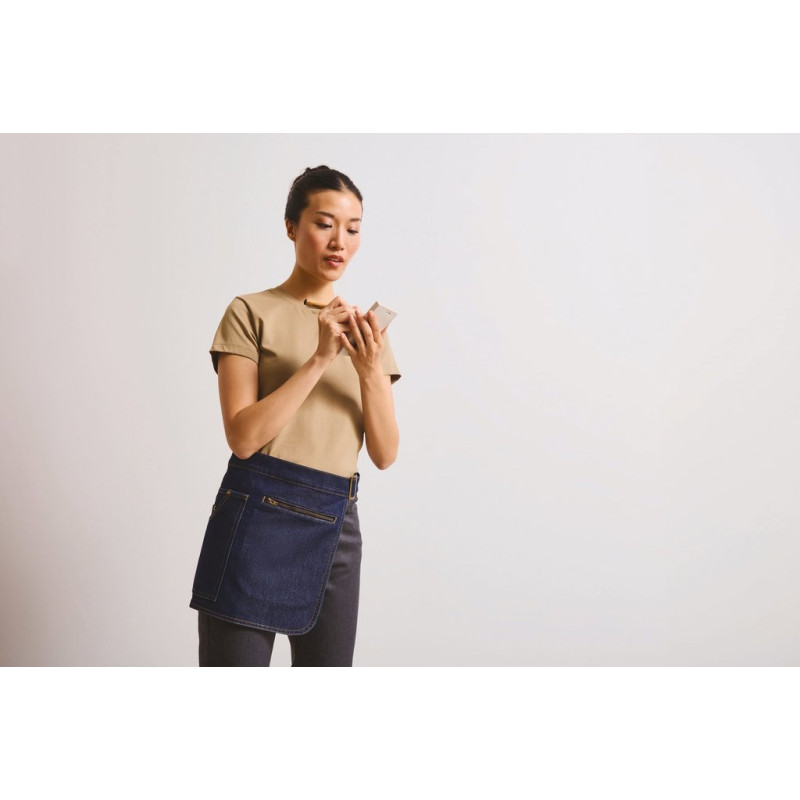 100% tecido em algodão (ganga: 70% algodão/30% poliéster sarjado). Inclui um bolso tipo calças de ganga para tablet e um bolso com fecho. Cintura ajustável com mosquetão metálico envelhecido e presilha em D. Bainhas inferiores curvas. Lavagem doméstica a 60°C. Comprimento: 31 cm. Largura: 32 cm. Dimensões do bolso tipo calças de ganga: 20 cm x 18,5 cm. Dimensões do bolso com fecho: 16 cm x 16 cm.