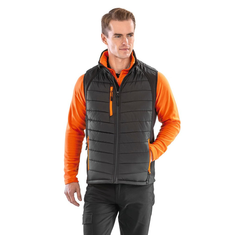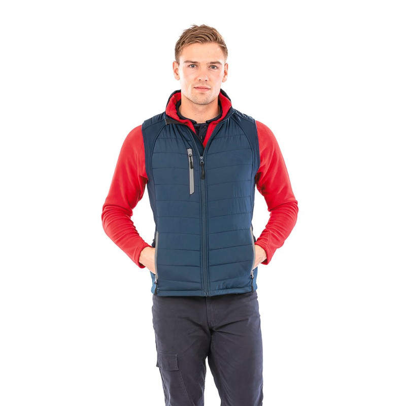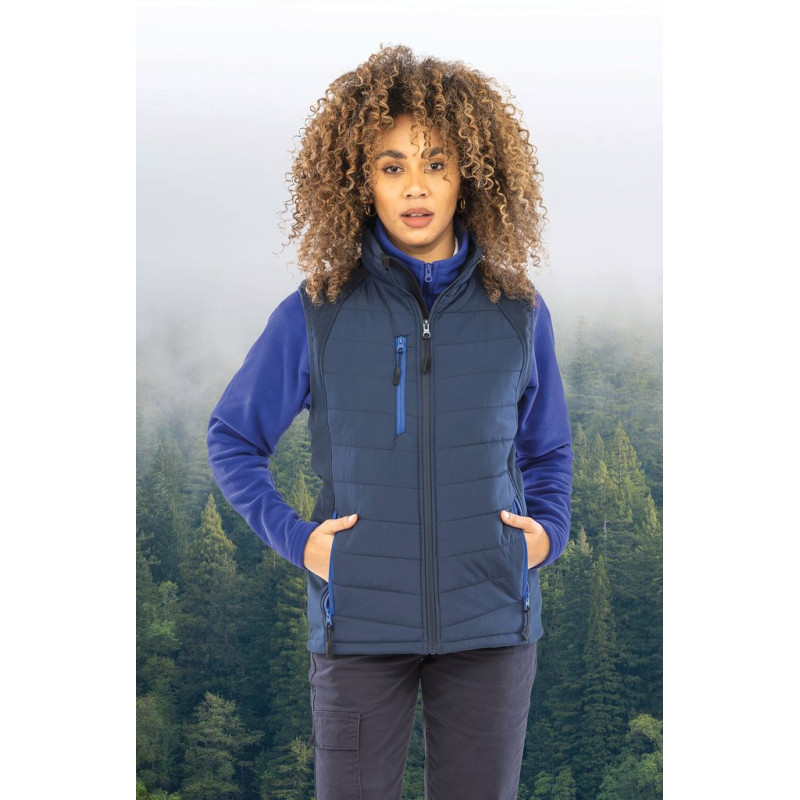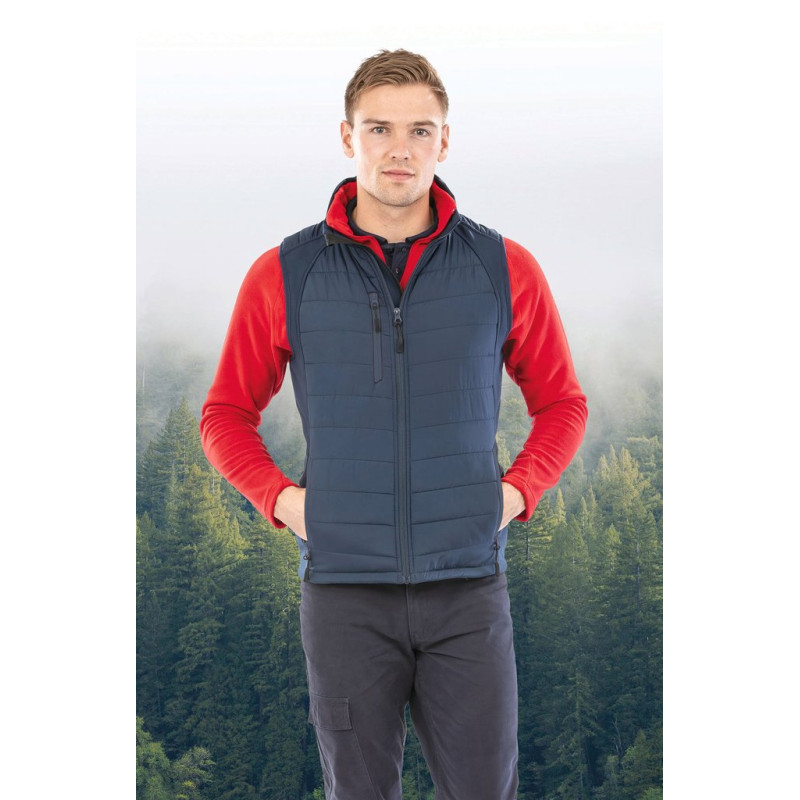 Tecido do corpo: exterior: 100% poliéster reciclado JIAREN. Isolamento: poliéster 180 g/m². Forro: 100% poliéster. Fecho à frente com protecção para o queixo acolchoada. Bolsos com fecho em contraste um no peito e dois laterais, todos com puxadores pretas. Corpo acolchoado. Muito suave, leve e quente. Fecho de acesso para personalização no peito esquerdo.