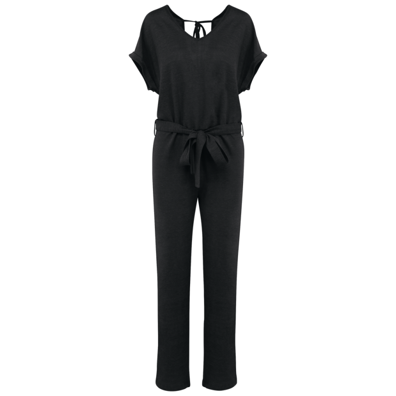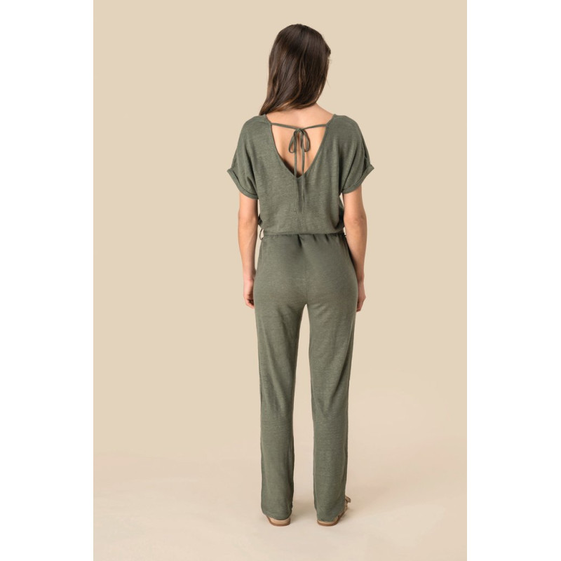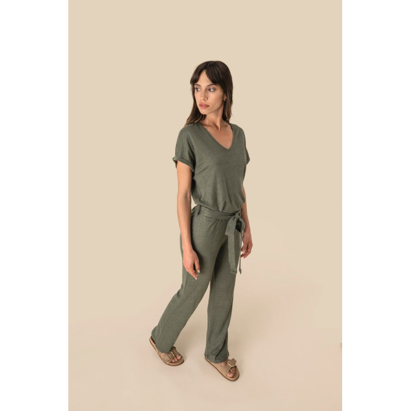 Macacão em malha de manga curta em linho de senhora