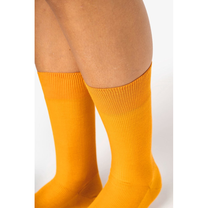99% algodão biológico / 1% elastano. 39/41 EU - 41/43 EU - 43/45 EU. Made in Italy. Fio egípcio. Malha fina. Calcanhares e extremidades reforçados. Elastano na parte superior da meia para maior elasticidade e conforto: malha rib 1x1. Cano alto italiano: 32cm a 36cm.