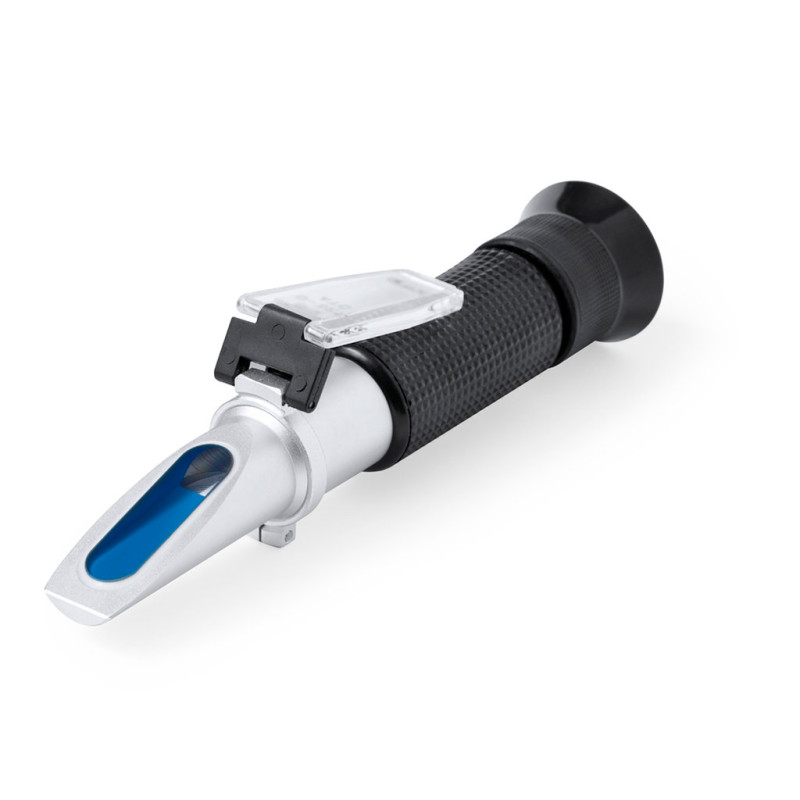 Refratómetro manual portátil, especialmente concebido para o controlo dos graus Brix. Funciona deitando uma gota no compartimento designado, baixando depois a tampa transparente e olhando através do visor enquanto se ajusta o botão. Portátil e apresentado num resistente estojo de transporte com fecho de segurança e acessórios interiores. Com instruções em espanhol e . Apresentado numa caixa de design kraft.Conteúdo: -Medidor -Estojo de transporte com interior de espuma. -Pipeta -Chave de fendas -Pano de limpeza.