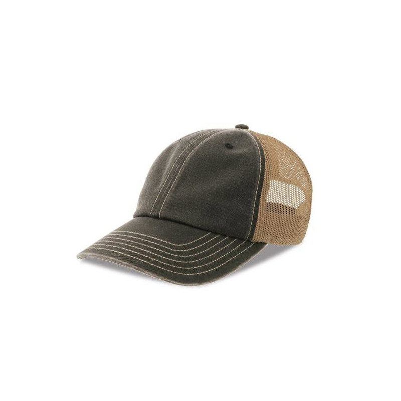 Boné trucker em 50% algodão e 50% algodão reciclado, não estruturado, com 6 painéis e parte traseira em malha macia e respirável. As costuras contrastantes e o painel frontal em algodão reciclado tingido com pigmentos conferem a este boné um visual vintage distinto. Acabamento com fecho de velcro e pala reciclada.