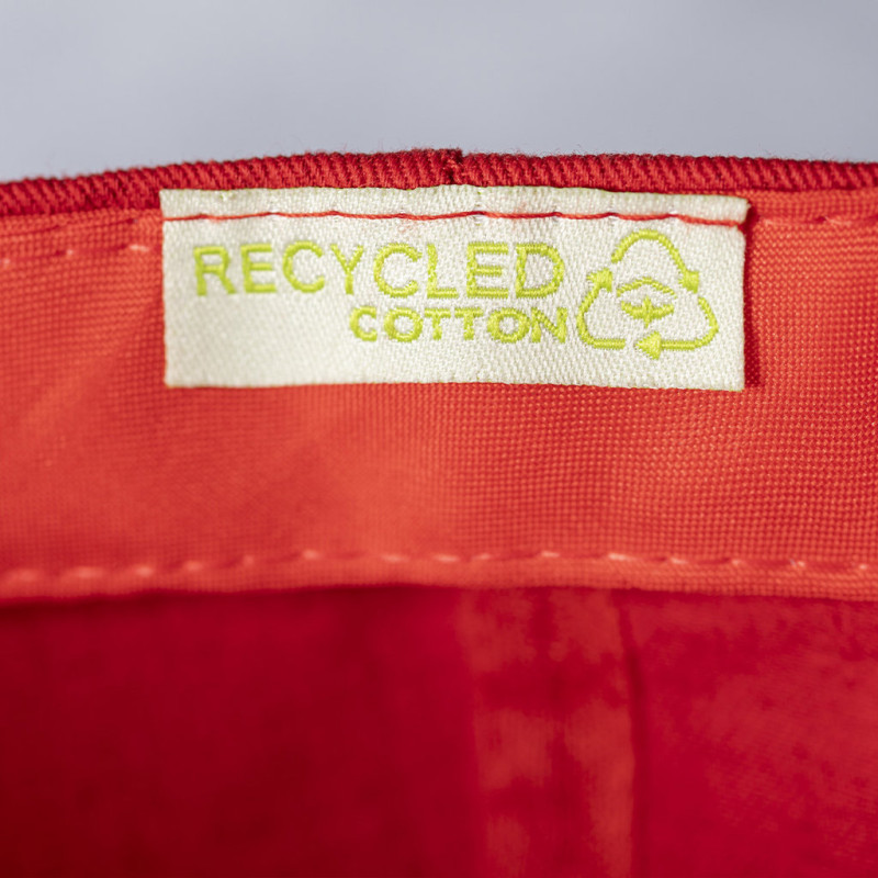 Boné de linha nature de 5 paíneis, fabricado em combinação de algodão reciclado e poliéster reciclado. Certificação GRS (Global Recycled Standard / Standard de Reciclagem Global), que garante a origem reciclada do material usado para fabricar o produto. Com fecho ajustável de velcro e disponível numa variada gama de cores.