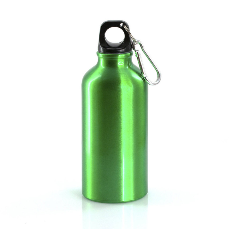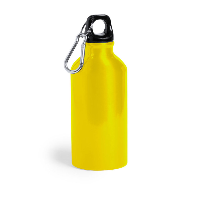 Garrafa de 400ml de capacidade com corpo de acabamento em alumínio em cores vivas e variadas. Com tampa de segurança de rosca e mosquetão metálico de transporte. Apresentada em atrativa caixa de design.