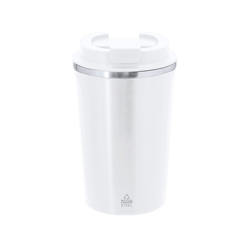 Copo térmico de dupla parede fabricado em Aço Inox Reciclado e 400 ml de capacidade. Tampa com dosificador de fácil abertura em PP e livre de BPA. Inclui distintivo de Aço Inox Reciclado.O aço é um dos materiais mais demandados e pode ser encontrado quase em todos os lugares, desde produtos de uso diário até grandes construções. Com inúmeras propriedades, entre as quais se destaca a durabilidade e seu alto grau de reutilização, tornando-se uma alternativa muito valorizada em soluções de sustentabilidade. Devidamente tratado, permite obter novos recursos de infinita utilização.