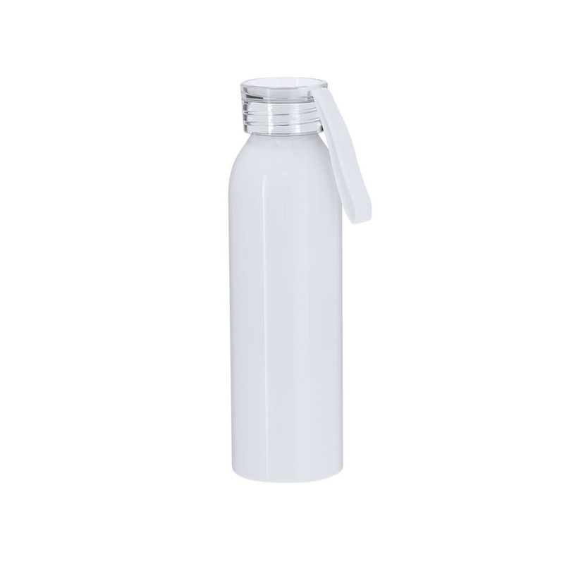 Bidão de 650 ml de capacidade fabricado em alumínio resistente. Na cor branca brilhante, especialmente projetado para sublimação. Com tampa à rosca translúcida e alça combinando para um transporte simples. Livre de BPA.