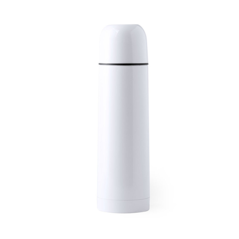 Garrafa térmica de 500ml em aço inoxidável resistente. Superfície externa especialmente projetada para marcação por sublimação. Com tampa segura e apresentado em caixa de design individual atrativo.