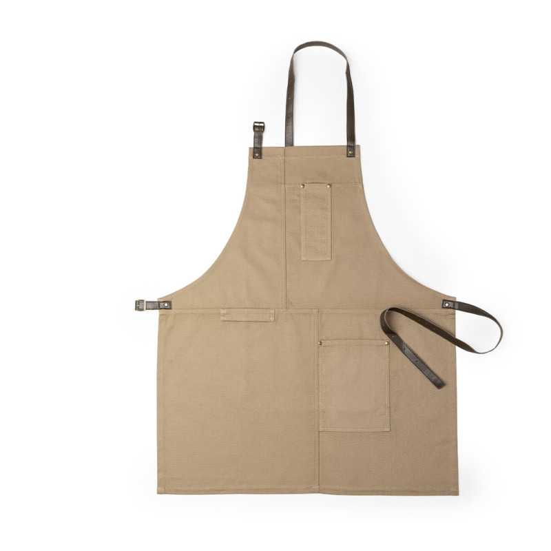 PRO avental em alta qualidade, em material de tela algodão resistente de 340g/m2. Ajustar sob o joelho, com tiras de pescoço e cintura em couro PU resistente, com ajustes de fivela e reforçado com rebites de metal. Incluindo muitos bolsos para vários utensílios, com costura reforçada.