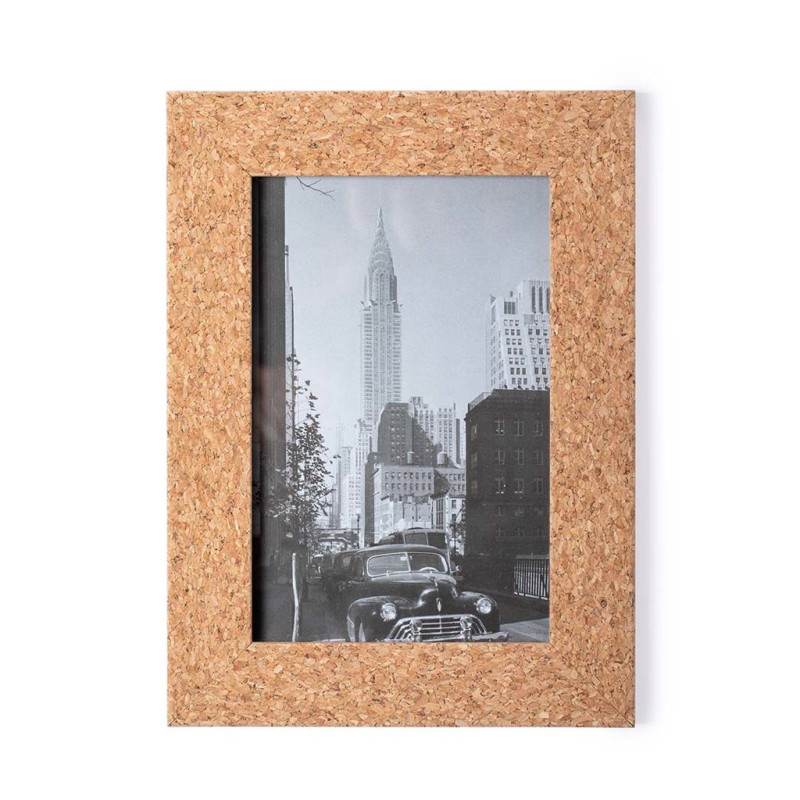 Porta fotos de linha nature fabricado em cortiça, com vidro de proteção e suporte posterior para orientação na horizontal ou na vertical. Desenhado para fotografias com tamanho de até 10x15 cm. Apresentado em atrativa caixa individual de design eco.