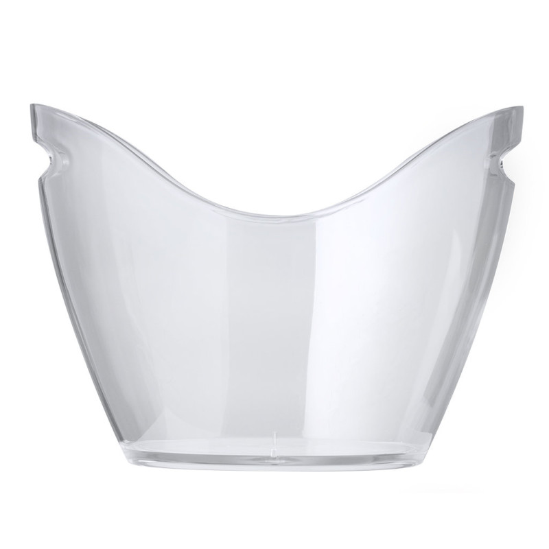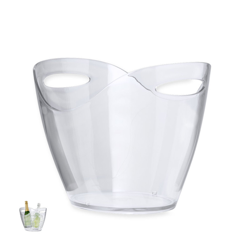 Elegante balde de gelo transparente de 8 l de capacidade fabricado em resistente PS. Este acessório combina estilo e funcionalidade, mantendo frias as bebidas pelo seu grande tamanho. Apresentado individualmente numa bolsa de borbulhas.