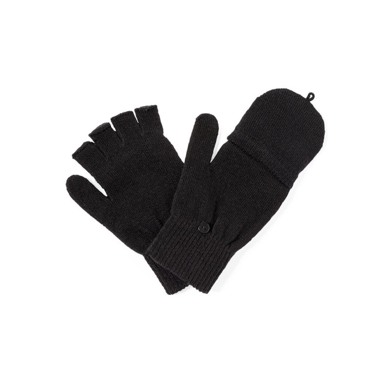 Prático par de luvas fabricadas em quente e suave acrílico. Com aba dobrável para transformá-las em luvas, ideais para se proteger do frio mantendo uma boa manobralidade. Tamanho única adulto. Apresentadas em bolsa individual reciclada.