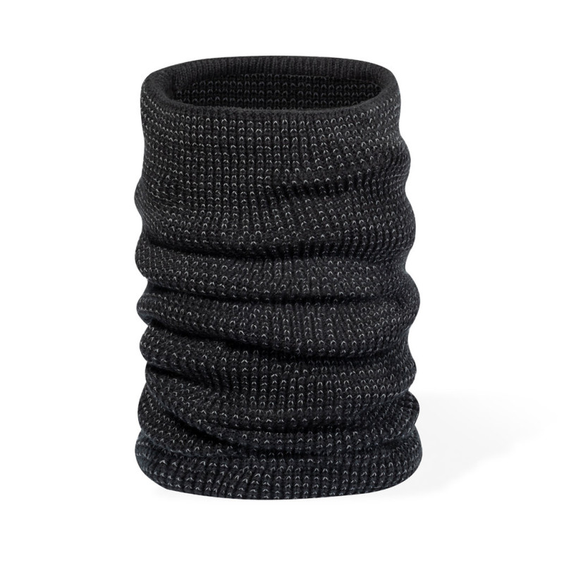 Quente aquecedor de pescoço refletor em malha canelada, fabricado em suave material acrílico elástico em combinação com poliéster, e interior em macio polar fleece. Inclui um fio refletor entrançado no tecido para aumentar a visibilidade.