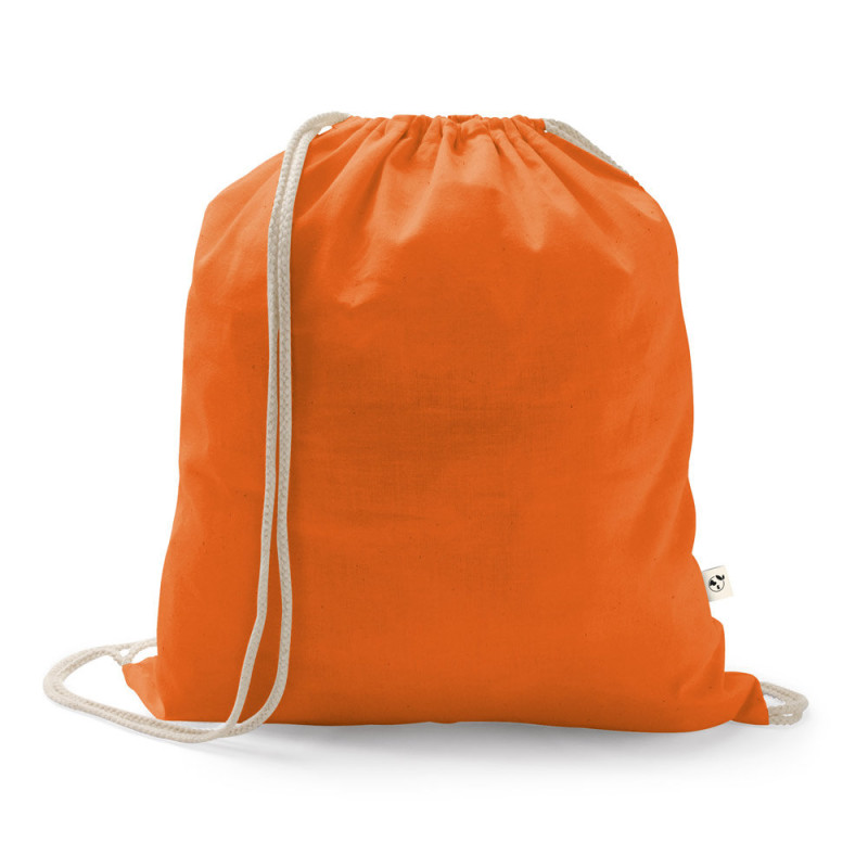 Saco tipo mochila em algodão reciclado (70%) e poliéster (30% rPET) (150 g/m²) com cordões de algodão para fechar. O algodão reciclado é de cor sólida não tingido. A matéria-prima é usada na sua forma e cor originais, sem o uso de produtos químicos de tingimento ou branqueamento, contribuindo para um menor impacto. A cor sólida é obtida pela escolha de fio reciclado com a mesma tonalidade, podendo aparecer impurezas e variações de cor. 370 x 410 mm