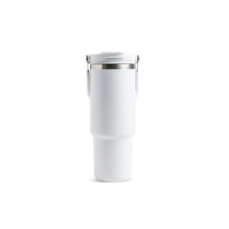 Com um desempenho térmico superior, mantém bebidas frias até 24 horas e quentes até 12, graças à estrutura de parede dupla com isolamento a vácuo. A palhinha rebatível com boquilha integrada permite uma utilização prática e confortável, mesmo em movimento. A pega metálica dobrável facilita o transporte e adapta-se facilmente a diferentes contextos do quotidiano. De design moderno e funcional, é fornecido em caixa individual, garantindo uma apresentação cuidada e ideal para oferta.