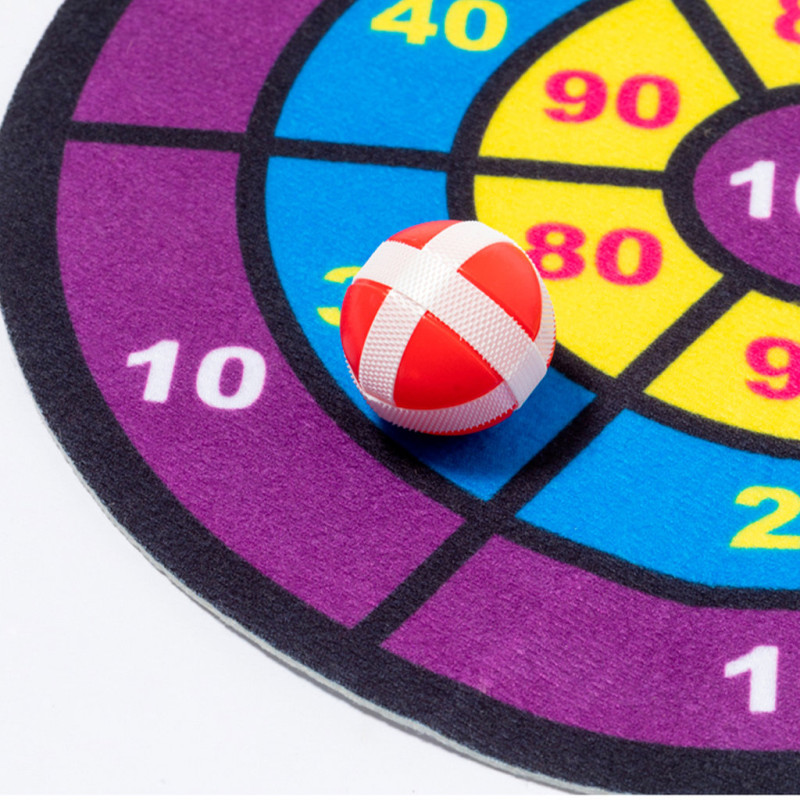 Divertido alvo de tecido com bolas de velcro. Perfeito para todas as idades oferecendo um objetivo desafiante e seguro. O jogo consiste em lançar as bolas de diferentes cores para o alvo com diferentes pontuações, as quais se mantêm fixas graças ao seu exterior de velcro. Fácil de pendurar em qualquer sítio e a qualquer altura através de um orifício. Inclui alvo de tecido fléxivel e 3 bolas com velcro. Apresentado em bolsa reciclada.