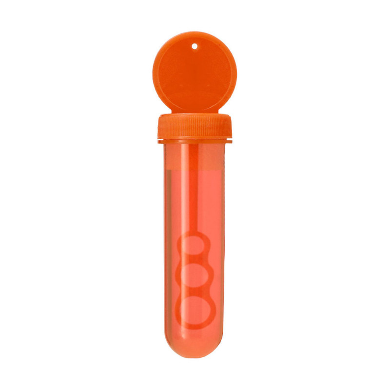 Soprador com aplicador especial que permite criar bolhas em 3 tamanhos. Líquido incluído (30 ml). Com tampa de cor sólida e corpo translúcido.