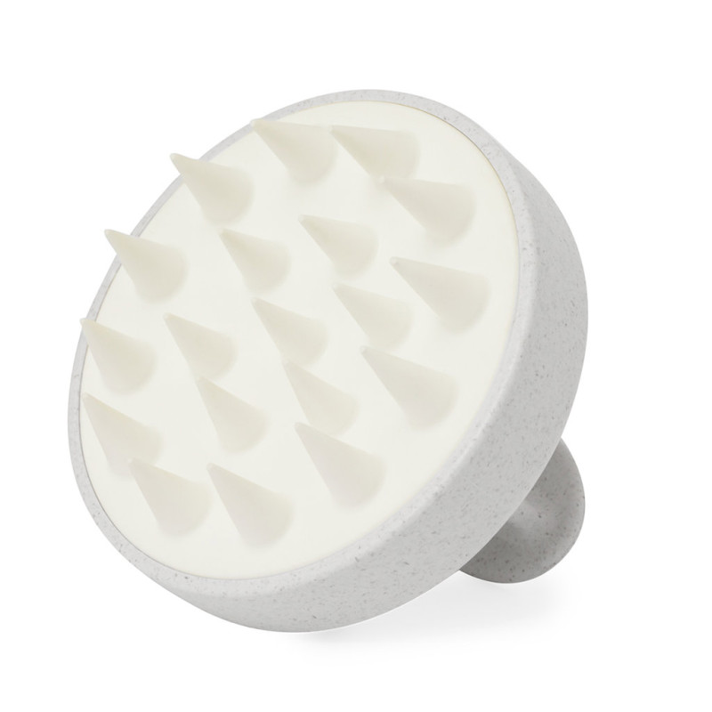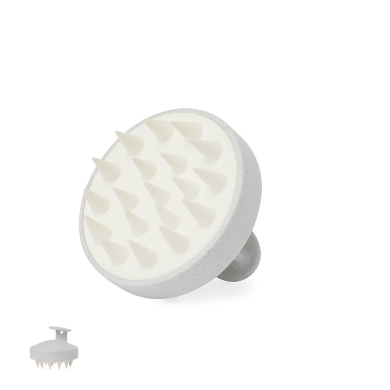 Escova de massagem para o couro cabeludo em palha de trigo.Eficiente emulsionador de champô eficaz para massajar agradavelmente o cabelo, estimulando os capilares e otimizando a limpeza com as suas cerdas de silicone macias. Apresentada numa caixa individual de design kraft.A palha de trigo promove a utilização de matérias-primas naturais, reduzindo assim as emissões poluentes.