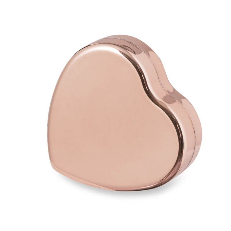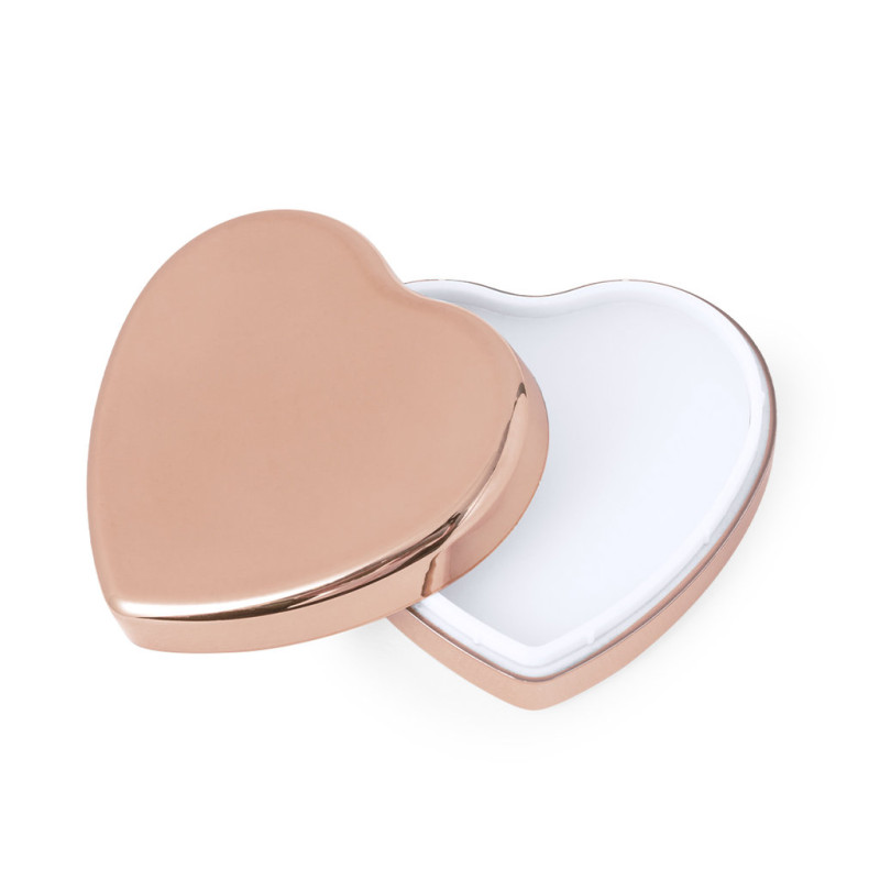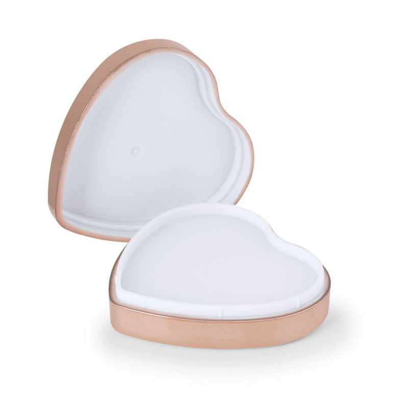 Bálsamo labial em elegantes cores dourada, prateada e dourado rosa em forma de coração. Aroma de baunilha, proteção SPF15 e dermatologicamente testado. Com tampa de pressão e acabamento brilhante.