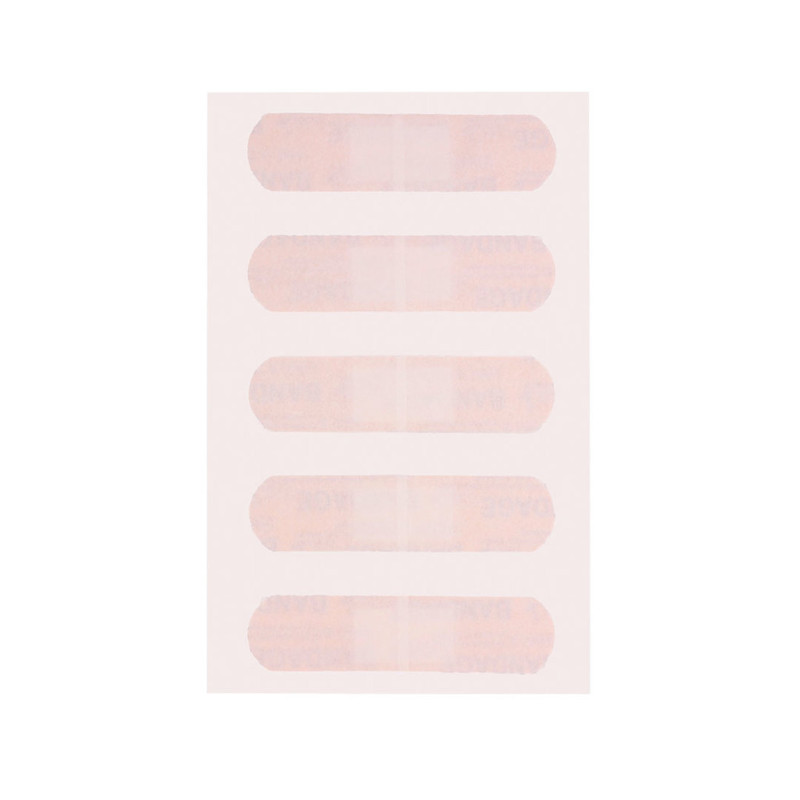 Conjunto de pensos rápidos em estojo de PP. Estojo translúcido com abertura deslizante lateral. Inclui 5 pensos esterilizados.
