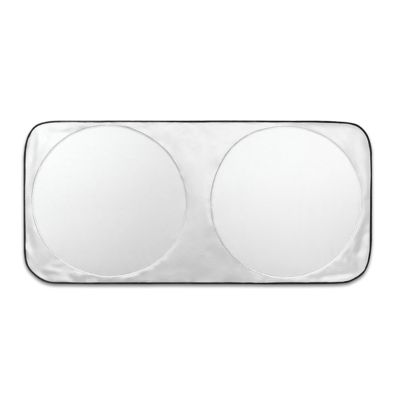 Protetor solar para carro em poliéster 210D com duas áreas circulares de 65 cm de diâmetro. Num formato inovador, este protetor é ideal para os dias de maior calor. Fornecido dentro de uma bolsa, em poliéster 210D, com formato redondo para fácil arrumação. 1500 x 700 mm
