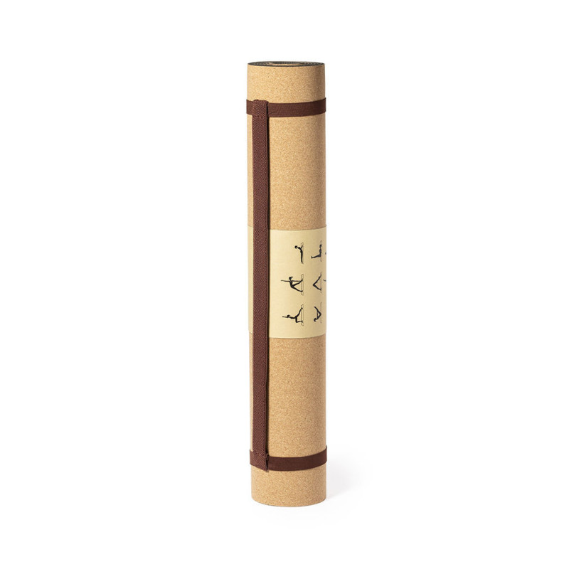 Esteira de linha nature para a prática do yoga e outras atividades. Fabricada em resistente cortiça natural, com base anti-deslizante em TPE. Tamanho 60x180 cm, com alça de transporte e apresentada em atrativa bolsa individual de desing eco, com ilustrações de exercícios.
