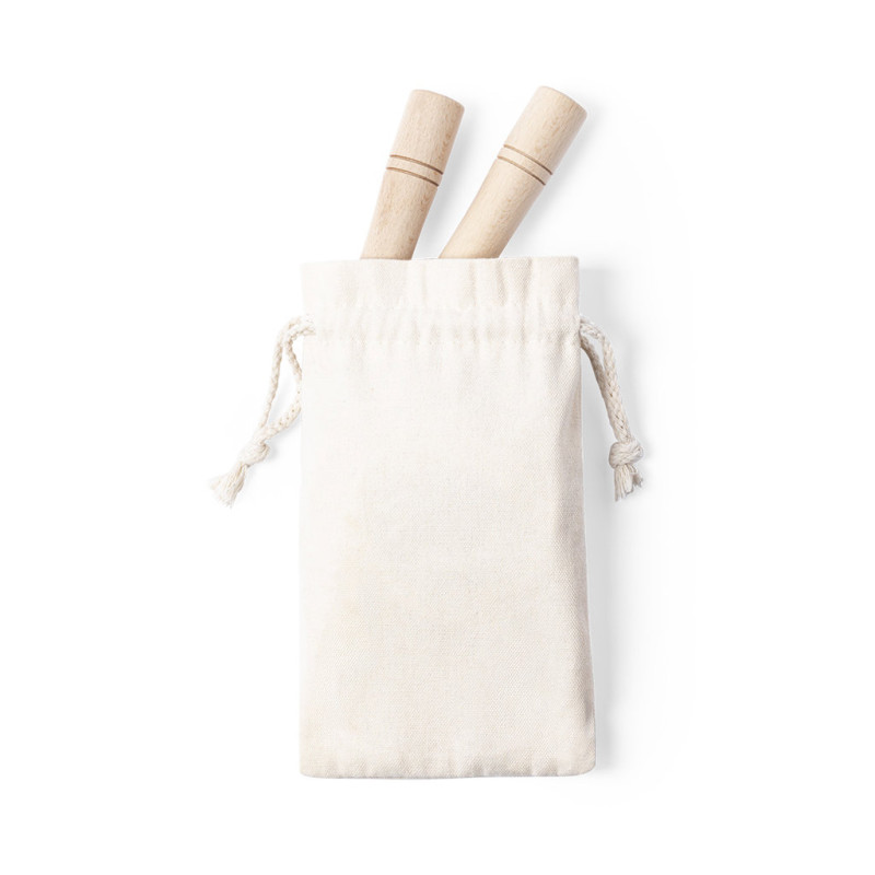 Corda da linha nature, com cordão extra longo de 3m fabricada em algodão de acabamento natural. Cabos ergonómicos fabricados em madeira resistente de faia e apresentada numa bolsa de algodão natural com fecho por cordão.
