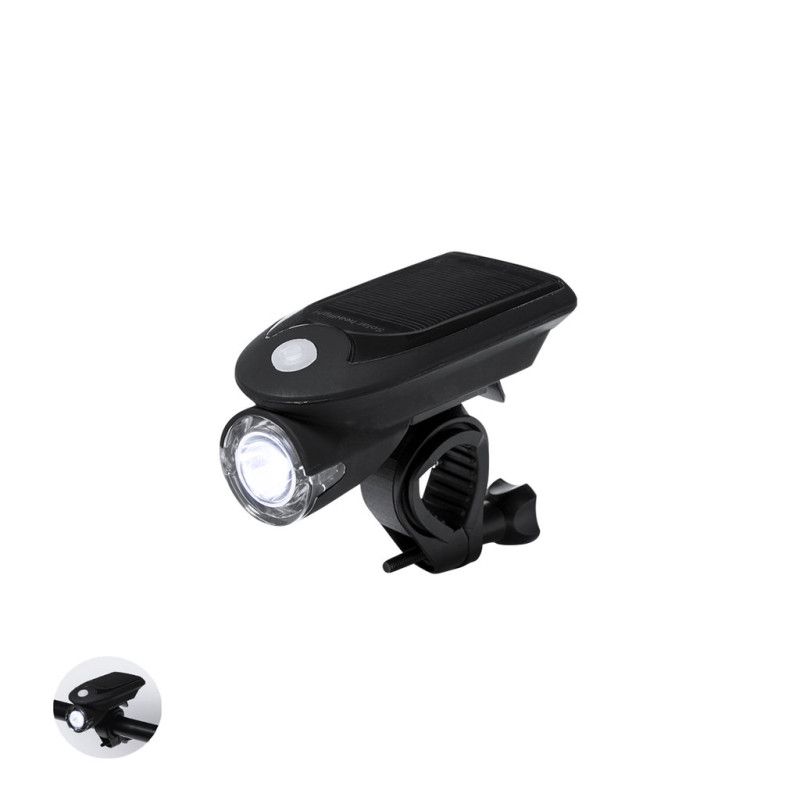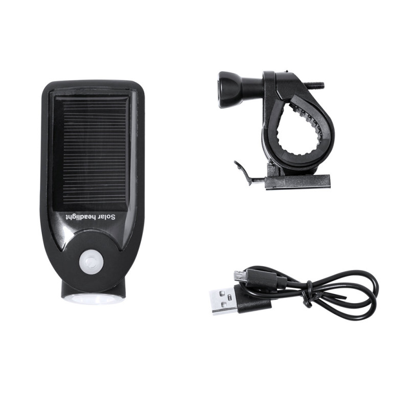 Luz de segurança para bicicletas com carga solar. Oferece três modos de iluminação: um fixo com intensidade média ou alta, e intermitente. Recarregavél graças à su bateria de 500 mAh de capacidade, com cabo e de carga incluida. Com acessório de montagem adequado e válido para todas as bicicletas e apresentado em caixa de design kraft..