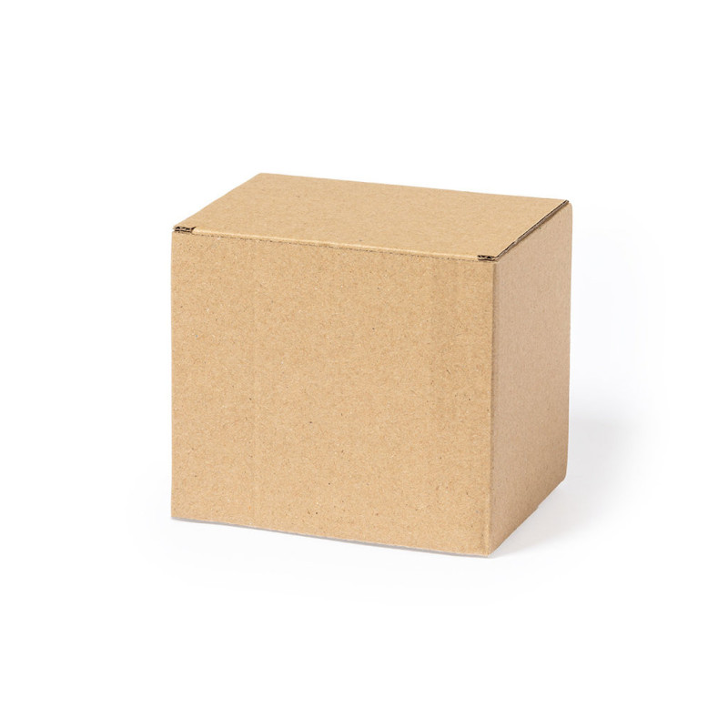 Caixa de apresentação especialmente concebida para canecas. Tamanho 12x10,6x9 cm e feita de cartão canelado reciclado com acabamento kraft. De acordo com a tendência do mercado para a sustentabilidade integral do brinde, oferecendo soluções de origem reciclada, a fim de ajudar à melhoria e conservação o nosso planeta.