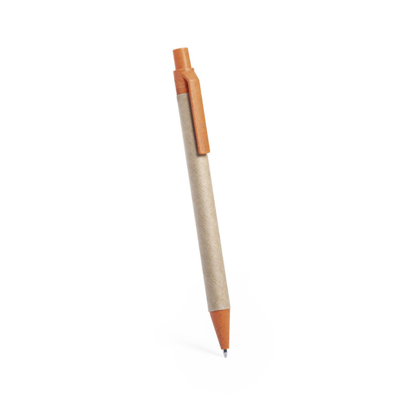 Esferográfica de linha nature com mecanismo pulsador. Uma combinação de corpo em cartão reciclado de cor natural e acessórios em cana de trigo e ABS, para assim incentivar a utilização e reciclagem de matérias-primas, reduzindo assim as emissões poluentes.Disponível numa variada gama de cores, com tinta azul. Distintivo Wheat Straw na parte superior da esferográfica.