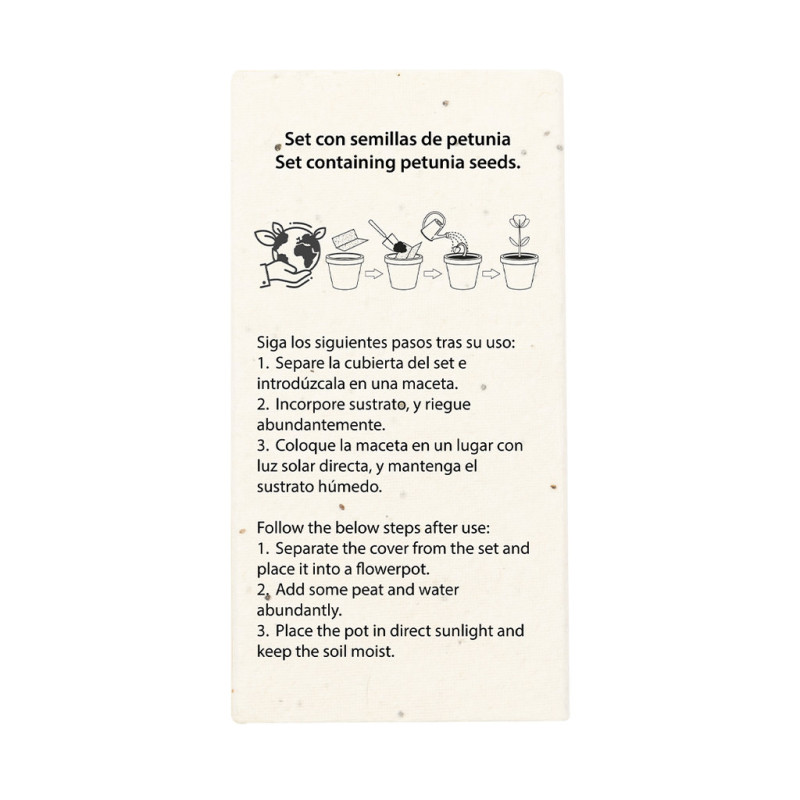 Set de 6 lápis em caixa de cartão natural com sementes. Lápis de madeira com corpo hexagonal de acabamento natural e minas numa variada gama de cores. Inclui sementes de petúnia na caixa, convertendo-o assim num cartão plantável no final da sua vida útil. Flores em cores sortidas, com instruções de plantação na capa traseira.