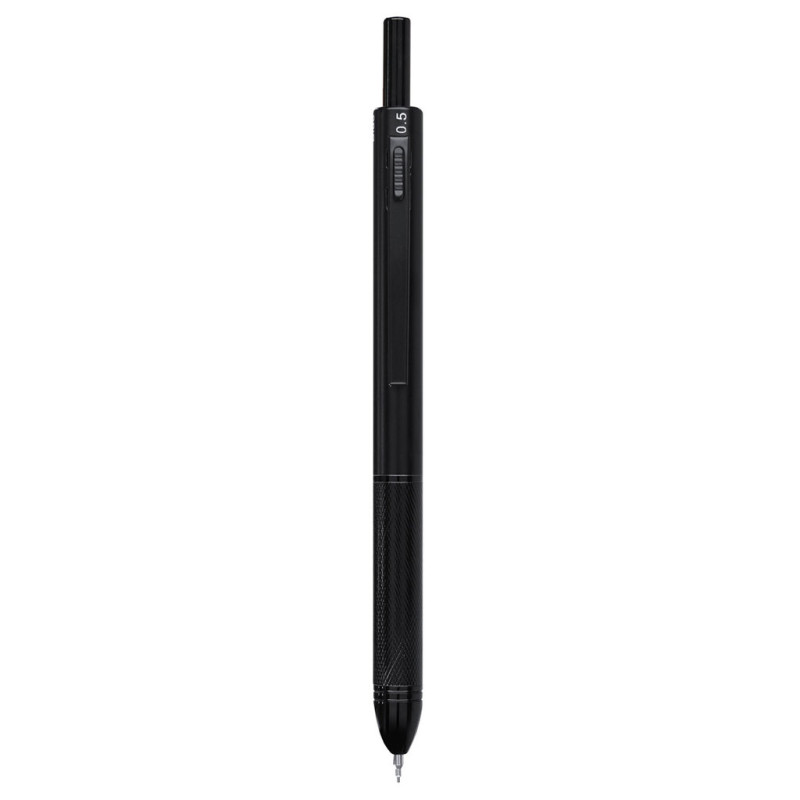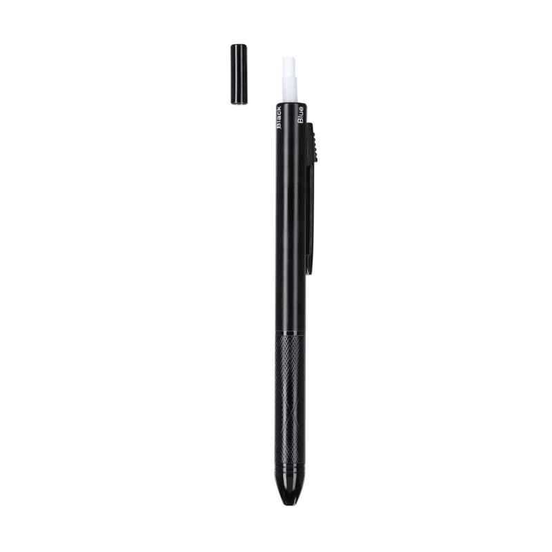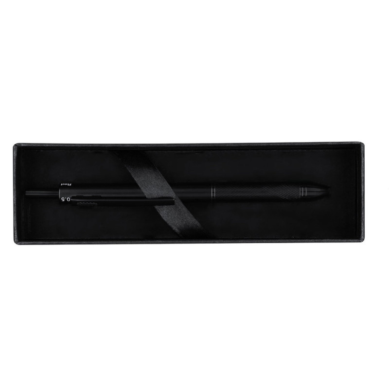 Caneta esferográfica 4 em 1 e lapiseira feita de alumínio resistente, com mecanismo inteligente que permite a seleção da cor da tinta ou do lápis. Opções de tinta azul, preta e vermelha e função de lapiseira. Inclui 1 grafite de 0,5 mm, com borracha integrada no botão de pressão. Pegada ergonômica e clipe de cor correspondente.