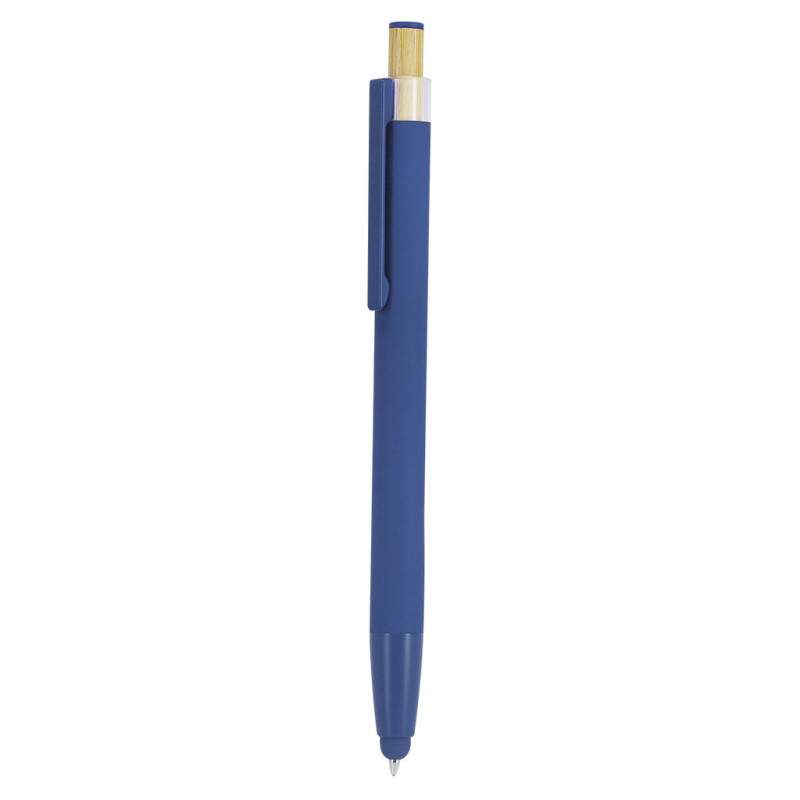Caneta ponteiro fabricada em alumínio reciclado. Corpo com acabamento emborrachado. Desenhada com botão de bambu e detalhe superior a condizer com a cor do corpo e clip metálico a tom. Mecanismo de pressão. Inclui distintivo de alumínio reciclado. O alumínio reciclado é um material com possibilidades de reciclagem quase infinitas, sem perder as suas propriedades originais e consumindo menos energia neste processo. A certificação GRS (Global Recycled Standard) garante a origem reciclada do material utilizado na fabricação do produto. Materiais como o bambu promovem a utilização de matérias-primas naturais, reduzindo as emissões poluentes. Além disso, o bambu provém de uma planta de grande resistência e versatilidade, com crescimento e regeneração rápida, sendo uma excelente alternativa ao uso da madeira tradicional.